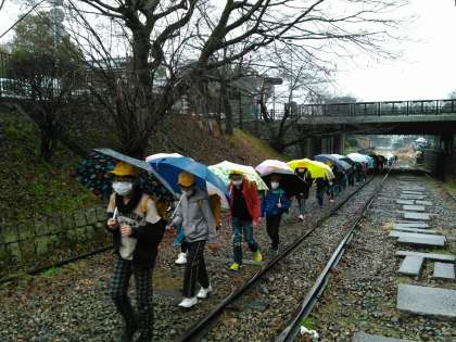 線路沿いを歩く姿は,「Stand by me」さながらです。
