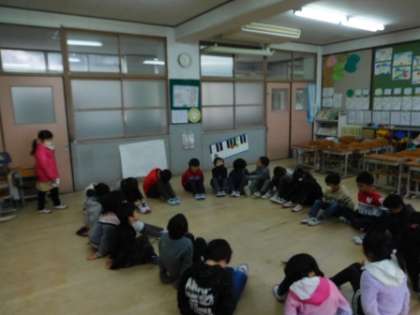 みんなで楽しくハンカチ落としをして遊んでいました。