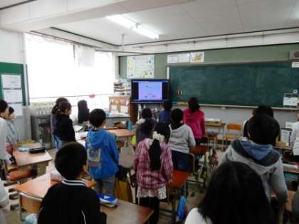「What color do you like?」のチャンツを歌ったり,お互いに尋ね合いました。