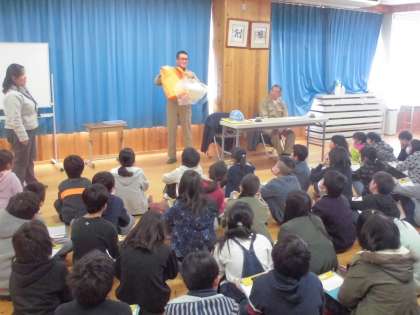 5日(月),地域の水防団の方に来ていただき,水害に関するお話をしていただきました。水害のこと以外にも,水防団のことや,5年前に起きた水害の様子のことなど,今まで知らなかったことをたくさん教えていただきました。今日知ったことをこれからの学習に活用して欲しいと思います。