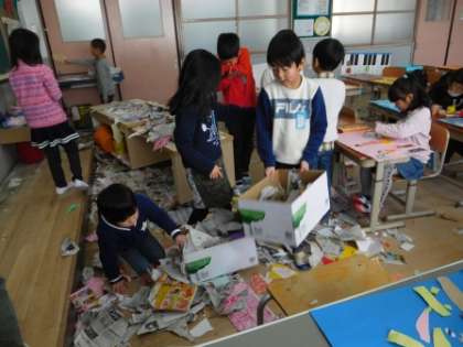 「紙を集めるの楽しい。」