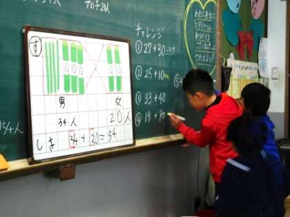 子どもたちは数え棒を使って,