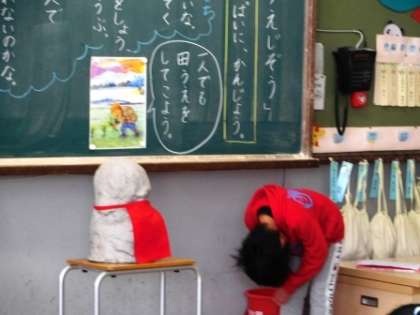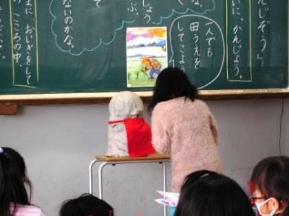 1年生は,道徳の学習で「お田うえじぞう」の話を聞きました。
