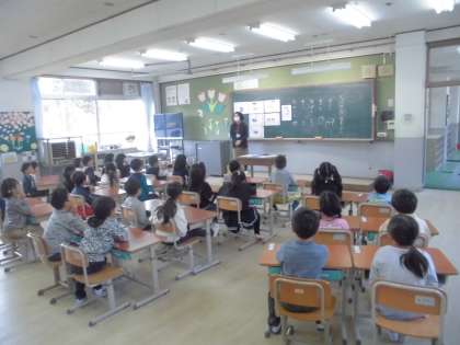 1年生の学校生活が始まりました。子どもたちは教室で静かに先生のお話を聞いていました。ランリュックの入れ方やトイレの使い方など,学校生活の基本的なルールを学びました。また,学校探検をして,どこにどんな教室があるのかなども見て回りました。