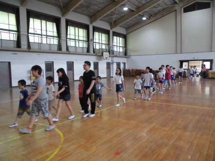 本番では,たてわりグループの6年生と一緒に入場するので,今日は入場練習をしました。