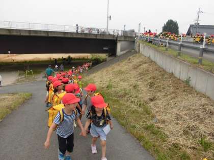 今日,1年生は「はるのえんそく」に出かけました。少し前まで雨の予報だったのが・・無事に曇りに!