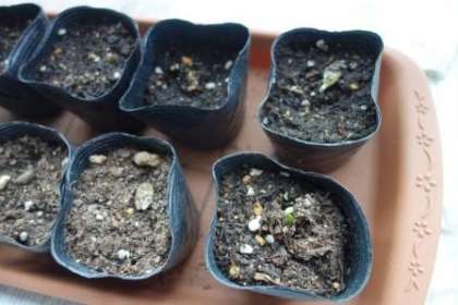 ツルレイシの種を植えて数日がたちました。毎日、「水いるかな?」「今日はやめておこう」とツルレイシのことを気遣いながら、見守ってきました。やっと発芽しました。これからも大切に育てていきたいですね。