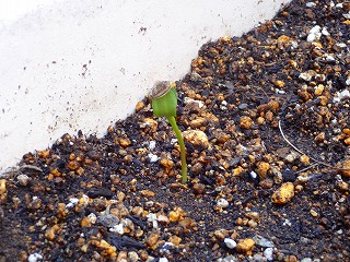理科で「植物を育てよう」を学習しています。今日は,先週に種まきをしたヒマワリ,マリーゴールド,ホウセンカ,ダイズ,オクラの子葉を観察しました。種が子葉に付いているものもあり,珍しい姿を見ることができました。