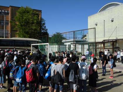 出発式では,元気にあいさつをし,多くの保護者の方のお見送りの中,バスに乗り込みました。24日(木)は,名古屋市科学館で見学したり方円館で陶芸体験をしたりします。活動の様子は,随時更新いたします。
