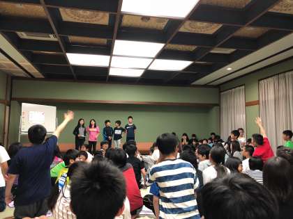 大広間に集まって,レクリエーション係の人を中心にみんなで楽しい時間を過ごしました。