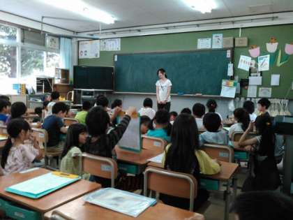 「へぇ,小学校のプールって大きいなぁ!」「ウズラって鳥,初めて見たー!」「職員室って広いね。」といった声が1年生たちから聞こえてきました。