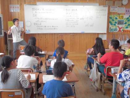 理科で「植物の成長と日光の関わり」について学習しています。植物に日光が当たる場合と当たらない場合では,どのようなちがいがあるのかを調べています。各班に分かれて,葉にアルミニウムはくをかぶせています。