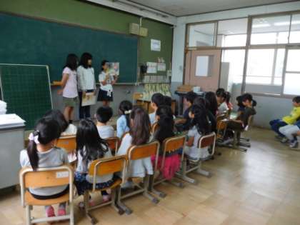 朝読書の時間に図書委員会から読み聞かせをしてもらいました。みんな楽しそうにお話を聞いていました。この機会にいろいろな本を読んでほしいと思います。