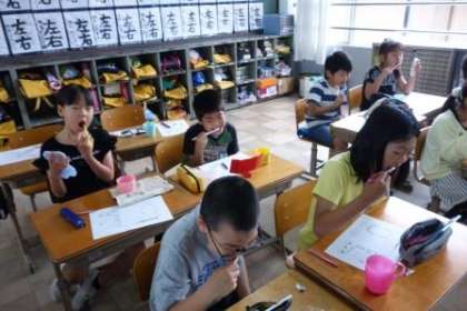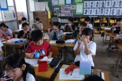 歯みがき指導をしました。歯ブラシの部位の名前と磨き方を確認しました。また、カラーテスターを使って、磨き残しがないかを調べました。「奥歯がよごれてたー。」「ちゃんと磨けているところもあった」と、自分の歯の磨き方を振り返りできました。これからも自分の歯を大切にしていってほしいと思います。