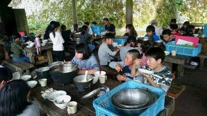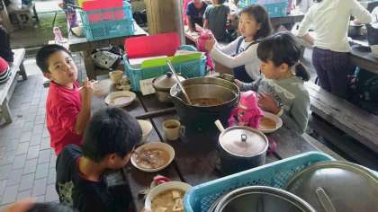 花背山の家 野外炊事(豚汁)3