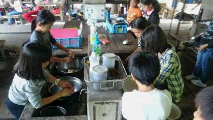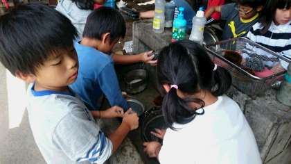 「ごちそうさま」のあとは,みんなで後片付けです。