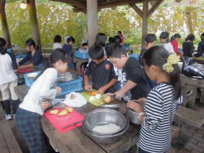 2回目の野外炊事はカレーライス作りに挑戦です。昨日の経験を生かして調理します。