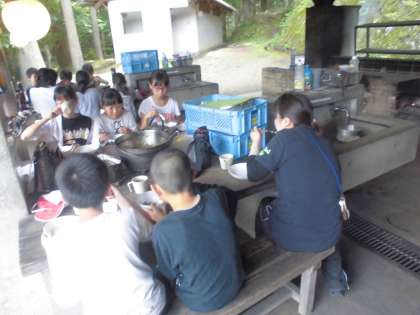 カレーライスの完成です。グループそれぞれのカレーができあがりました。美味しくいただきました。