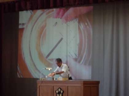 各委員会からのお知らせの後,校長先生からは先日の大雨のことや,大雨が降ったときは特に川に近づかないようにすることなどのお話がありました。また,夏休みの自由研究に向けて,「わくわくサイエンス」が行われました。校長先生が前で実験する様子を見て,子ども達からは歓声が上がっていました。