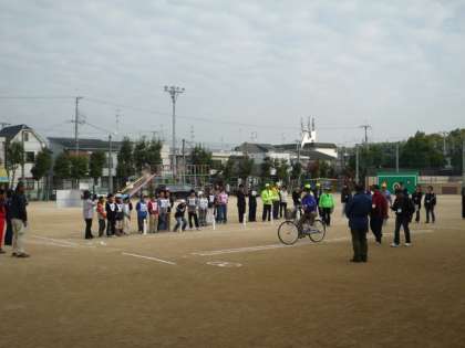 11月20日(土)「自転車半日教室」がありました。向日町警察署の方や自治連合会の方、ボランティアの方が自転車の安全な乗り方や交通ルールについて教えてくださいました。