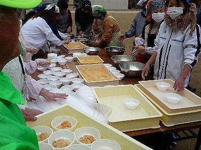 120kgのもち米を用意していただき,約1500人分のお餅をきなこ餅とぜんざいでおいしくいただけました。ありがとうございました。