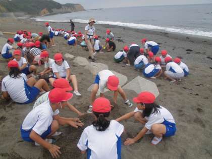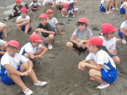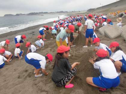 午後からは、大野浜に行って、砂浜遊びの活動です。