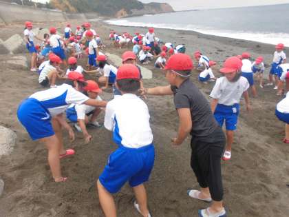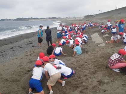 2回目は先生も子どもたちに負けじと山づくりに挑戦です。どのグループも先生に負けまいと高く美しい山を作り上げていました。