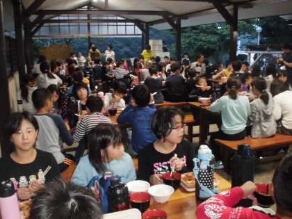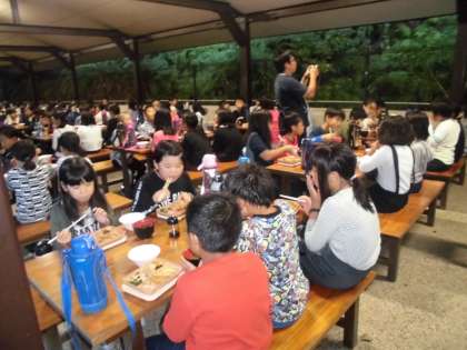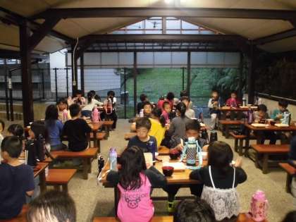 夕食は野外炊事場で食べました。