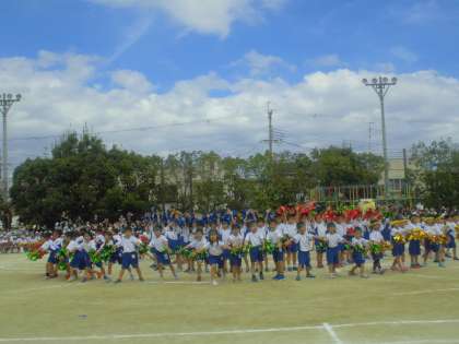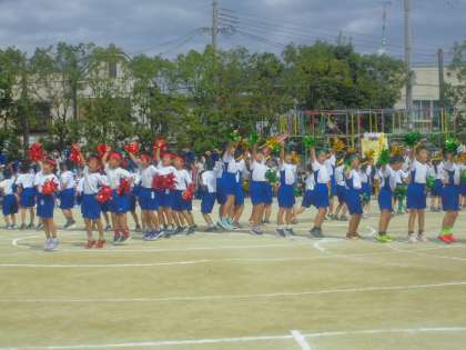 1年の団体演技は「これぞぼくらの晴れ舞台〜おどりまくっても ええじゃないか」は,曲に合わせて楽しい踊りを見せてくれました。
