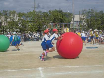 「大玉ころがし」は1・3・5年と2・4・6年に分かれて行いました。