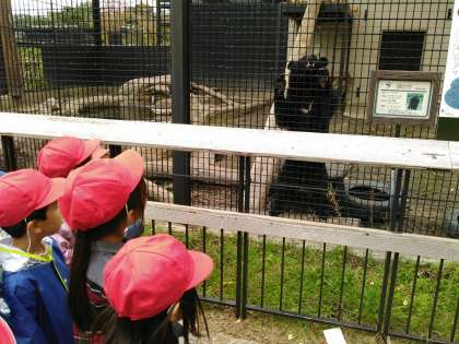 「へぇ,エミューって足の指が3本なんだって。」「4頭のゾウたち,ラオスっていう国から来たんだって。」「どうしてアカショウビンの部屋には金魚鉢があるのかなぁ・・。(もちろん餌です)」「先生,クマのほのかちゃんって何を食べるんですかー?(野菜や果物,煮干しを食べるよ)」