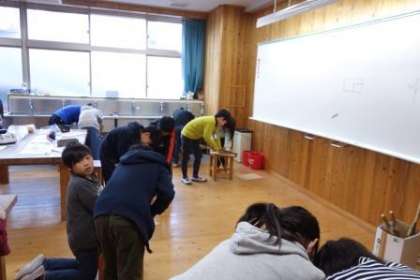 ぎこぎこクリエーターでは、のこぎりを使うことにチャレンジしています。ギコギコとリズムよく切っています。