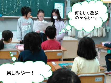 ・次週12日に3年生たちが一緒に遊ぼうかい(会)を企画しているとのこと。