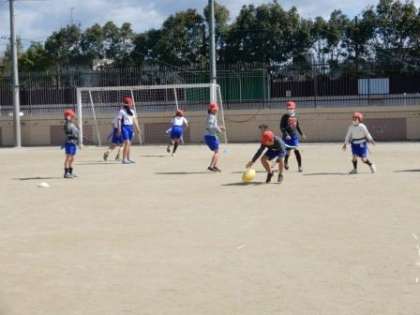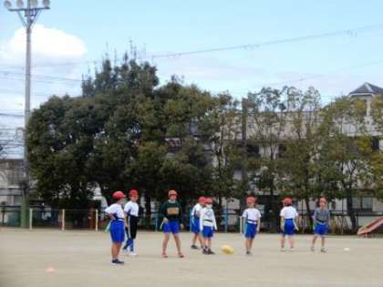 タグラグビーを頑張っています。はじめての競技で慣れないことが多かったですが、授業を重ねるごとにボールの扱いやタグの取り方・逃げ方などがわかってきたようです。ルールもわかってきて楽しく活動できています。