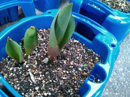 冬休み明けに1年生が植えたチューリップの球根たち・・。