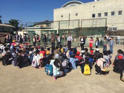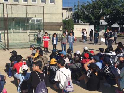 雲一つない青空の下,6年生125名全員が運動場に集まり,出発式を行いました。さすが6年生。大きな声で立派に出発式の進行をしてくれました。