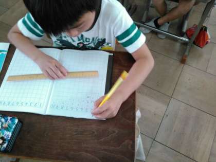 2年生になってから初めて使う道具“30センチメートルものさし”を使って,いろいろなところの長さを測ったり,直線を引いたりしています。