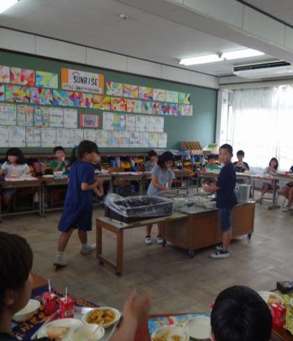クラスの友だち全員の顔を見て食べる給食はいつも以上に楽しそうで,クラスが1つになっていました。