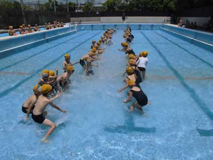 今日と明日は水に慣れるため,低水位での学習です。