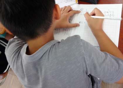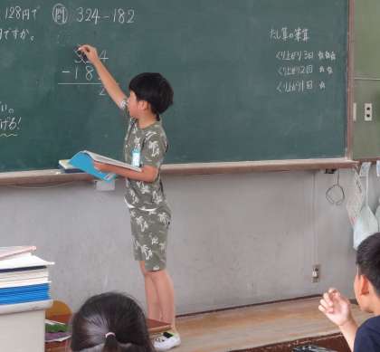 算数で「たし算とひき算の筆算」を学習をしています。今日は,3けたの数の引き算を筆算で計算しました。どの子も,くり下がりに気を付けて,真剣に取り組んでいました。
