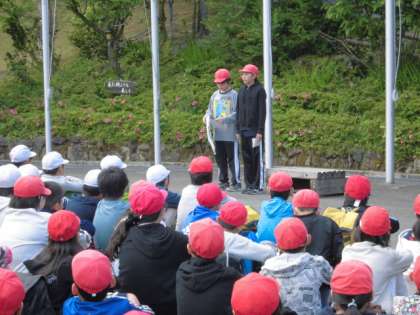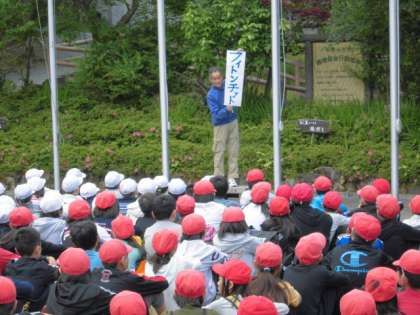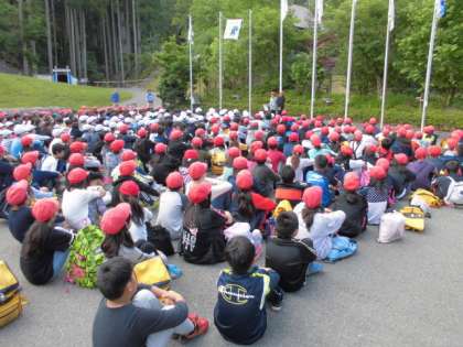 今日は,花背山の家に来ている4校の小学校で合同の「朝の集い」がありました。