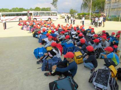 4日間楽しく過ごした様子がうかがえる“充実した顔”と,“疲れた顔”が入りまじった笑顔で,子どもたちはバスから降りてきました。