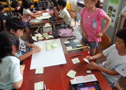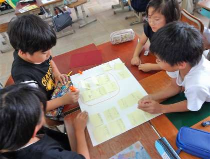 社会の「京都市のまちのようす」の学習で,京都市について調べたいことや知りたいことを考えました。「どんな山や川があるのかな。」「駅はたくさんあるのかな。」「工場が多い地域はどこなんだろう。」「区について調べたいな。」など,たくさんの疑問が出てきました。グループで,どんなことを調べたいか整理して,学習課題を作ることができました。これから学習を進める中で,京都市について,色々なことが分かるといいですね。
