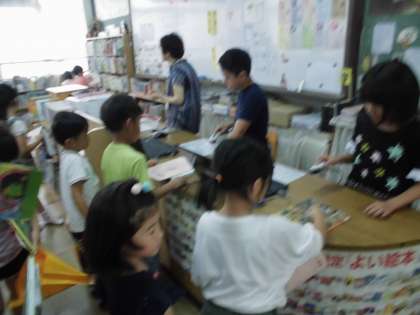 あじさい読書週間は毎日たくさんの子どもたちが学校図書館に来ています。