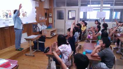 子どもたちは,時にはうなずきながら,真剣に聞いていました。