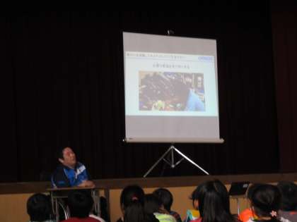 車いす体験に引き続き,太陽の家で働かれている,オムロンにお勤めの荒井さんに車いすについてのお話を聞きました。