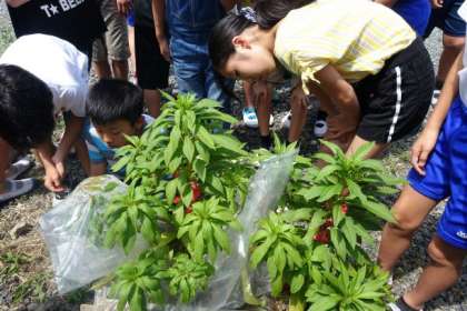 葉がついたままのホウセンカと葉を取ったホウセンカでは,袋の中の水滴の量が全く違い,とても驚いていました。