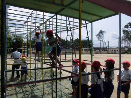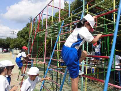 2年生のみなさん,学習した内容を生かして楽しく総合遊具で遊びましょう!