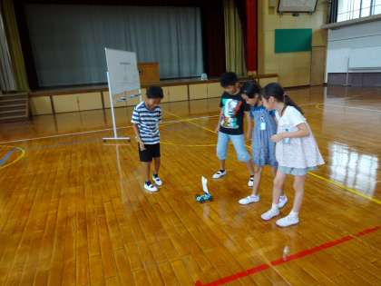 送風機を使って,帆を立てた車を走らせました。風の強さを変えると,どのように動きが変わるかをしっかりと実験することができました。