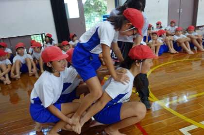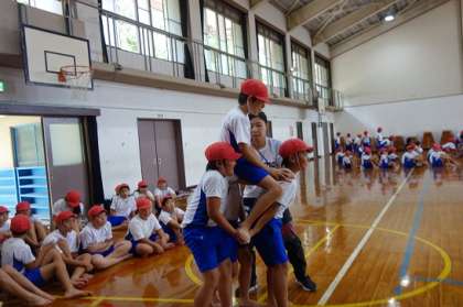 今日は,初めて騎馬を組みました。説明は聞いたもののいざ,乗ったり,組んだりすると「どうしたらいいの??」「どうやって上がったらいいの?」と心配していましたが,1組ずつ丁寧に組んでいことで安全に,しっかりと騎馬を組むことができました。
